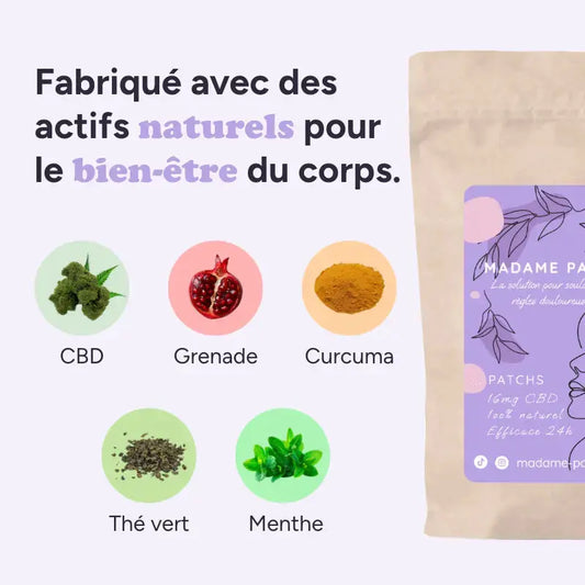 We present to you our Well-Being Patch for a natural and effective method to soothe menstrual pain thanks to the benefits of Turmeric and CBD .