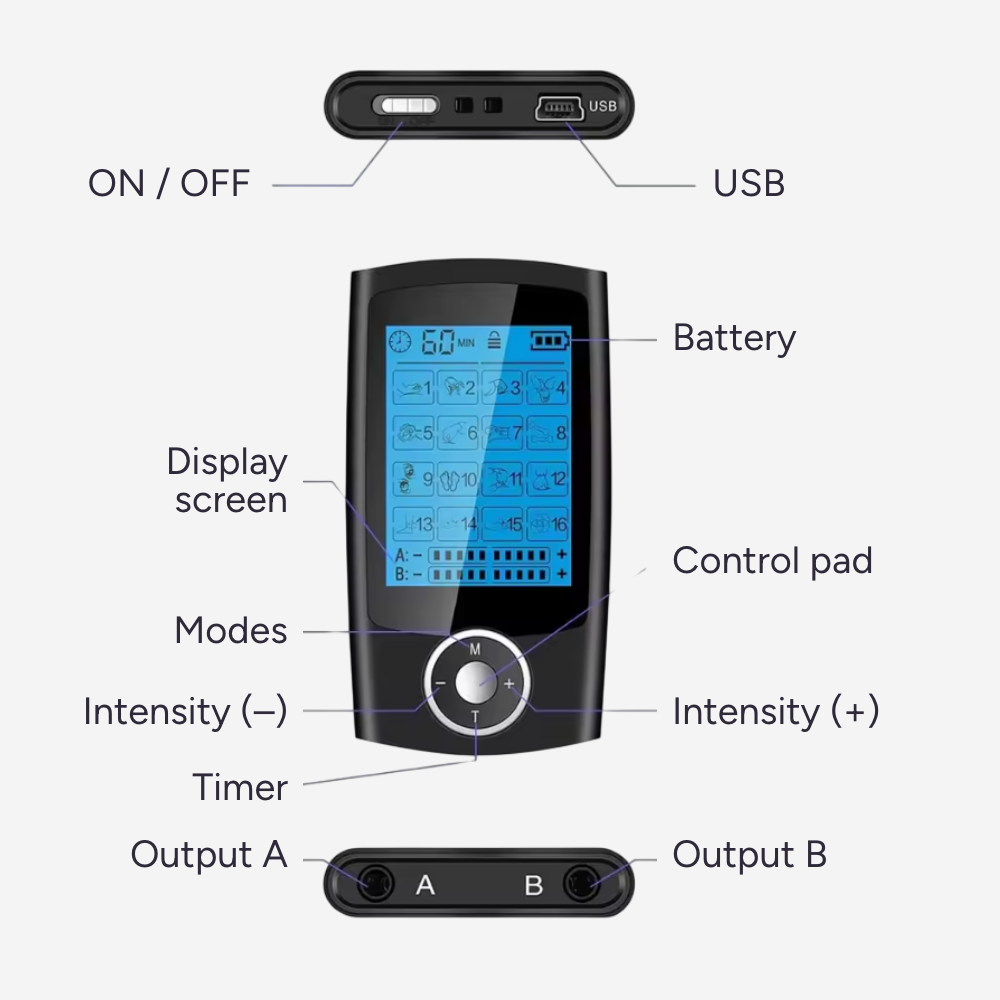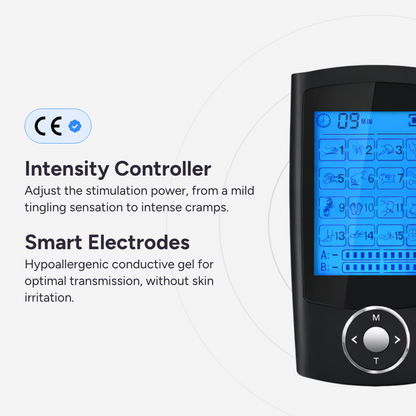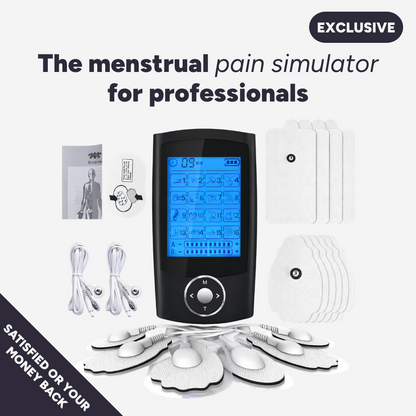 *Our device is presented as a menstrual pain simulator for educational purposes. However, it is important to note that no device can faithfully reproduce real menstrual pain, which originates from complex internal processes (uterine contractions, hormonal reactions, deep pain). Electrical muscle stimulation (EMS) only affects surface muscles, creating contractions and unpleasant sensations that partially mimic the discomfort experienced, without exactly reproducing reality. This product is not a medical device and should be used solely for learning purposes.