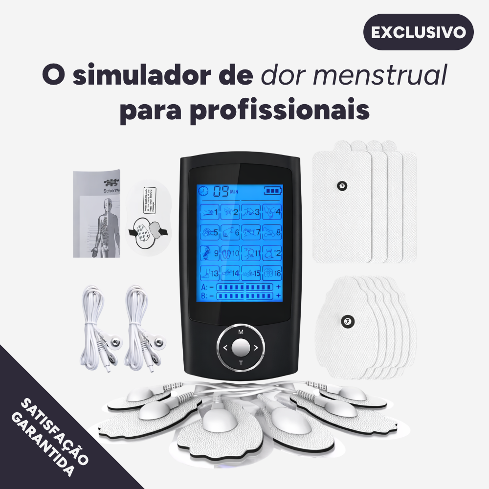 O simulador de dor menstrual utiliza tecnologia de eletroestimulação muscular para reproduzir, de forma controlada, a sensação de cólicas menstruais.