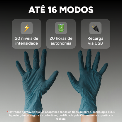 - O dispositivo emite impulsos elétricos suaves, causando contrações musculares específicas.